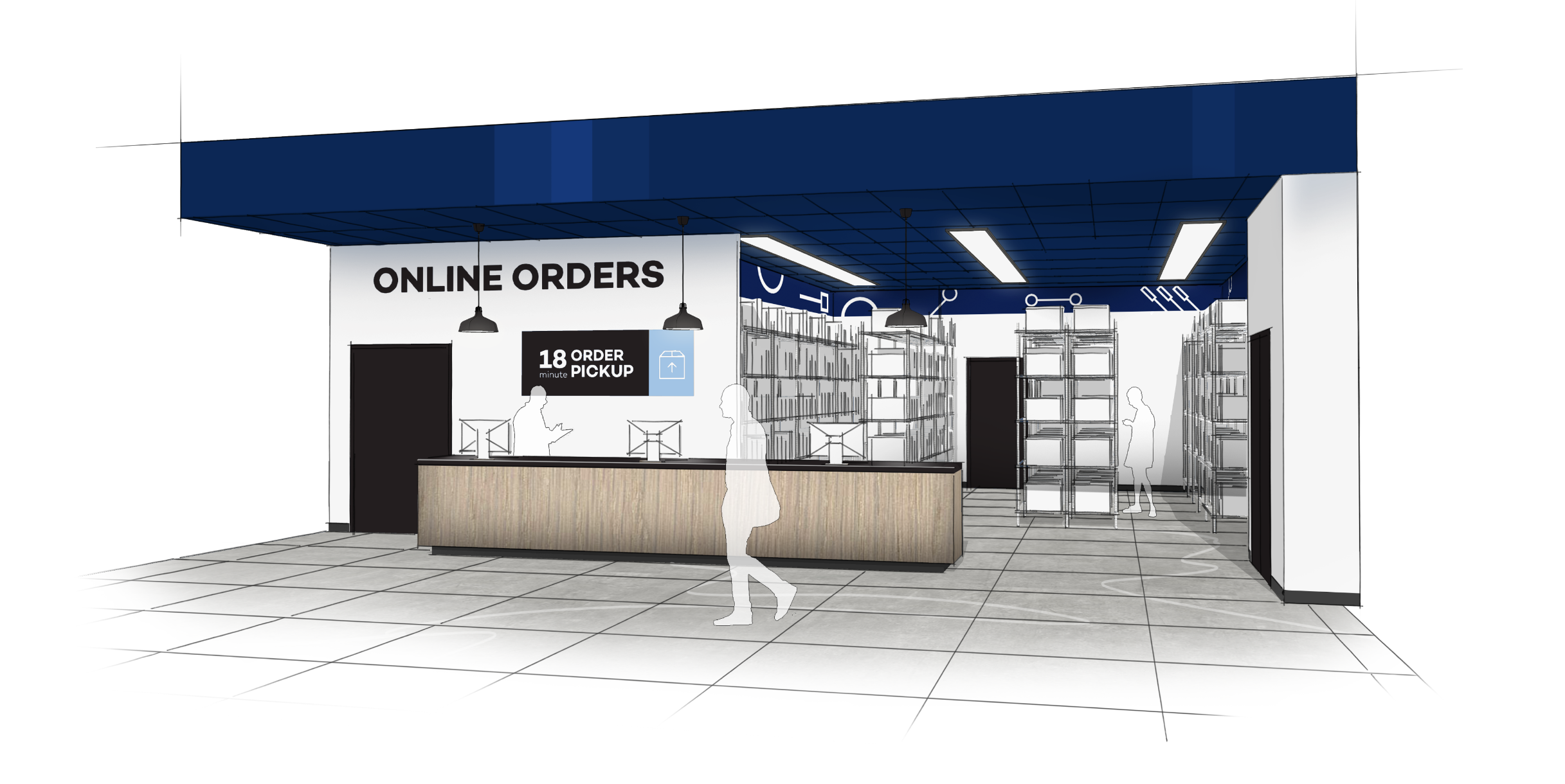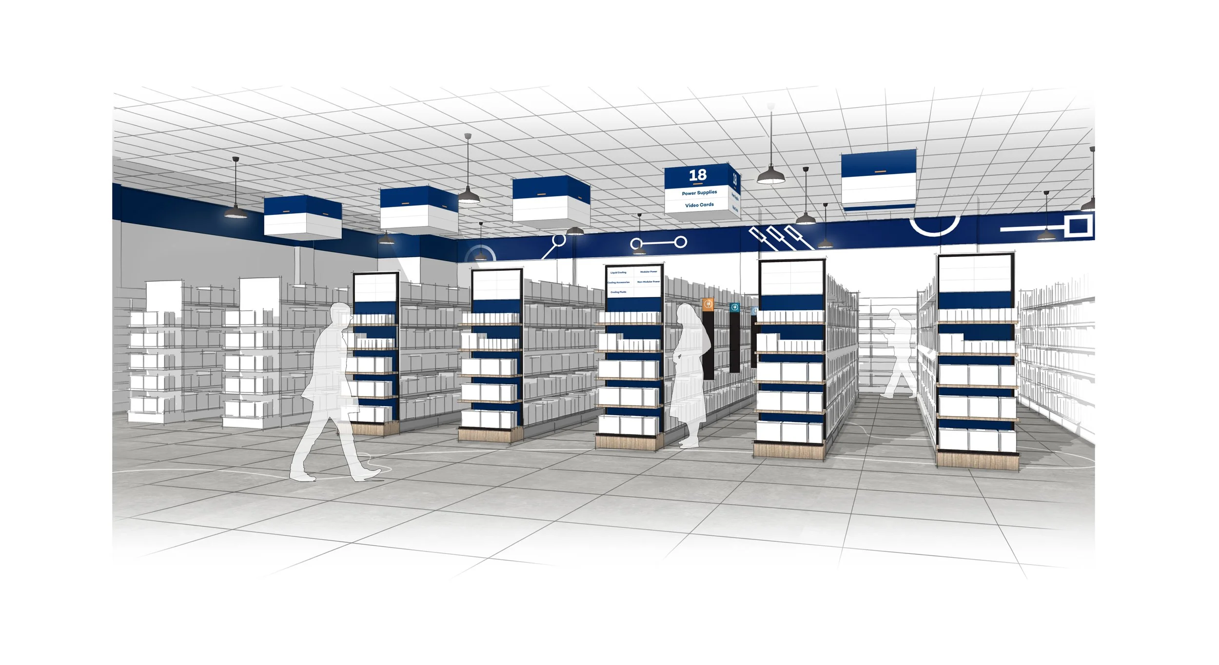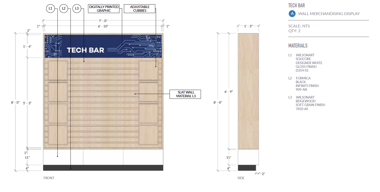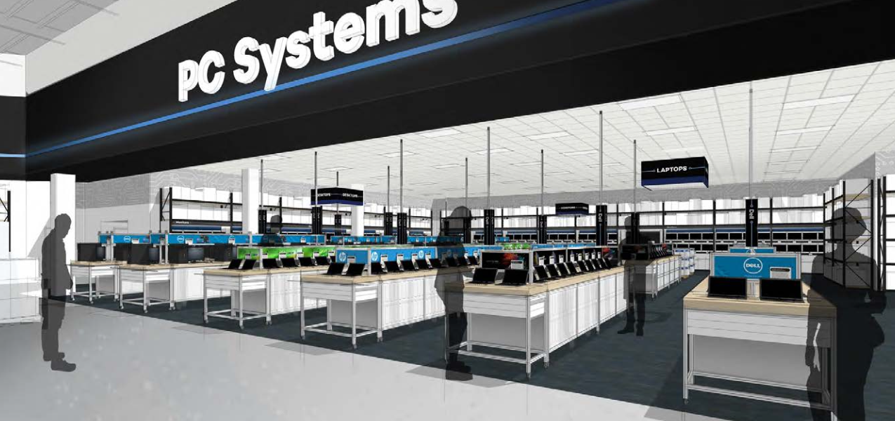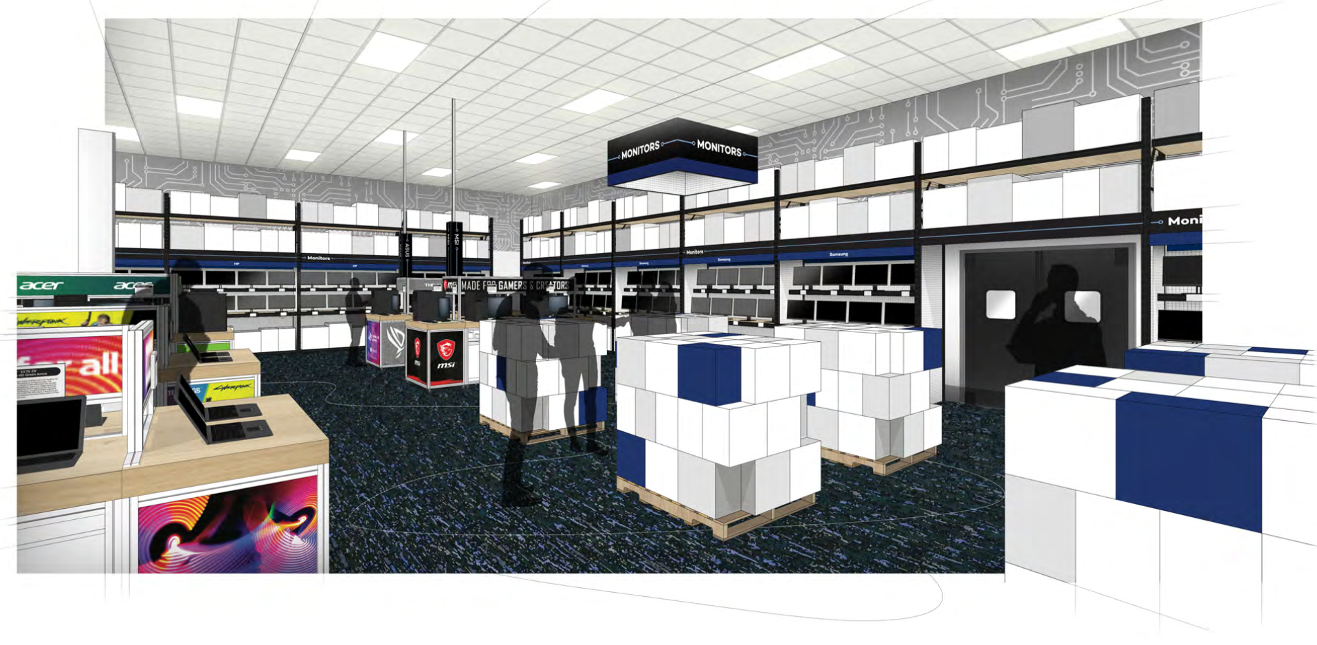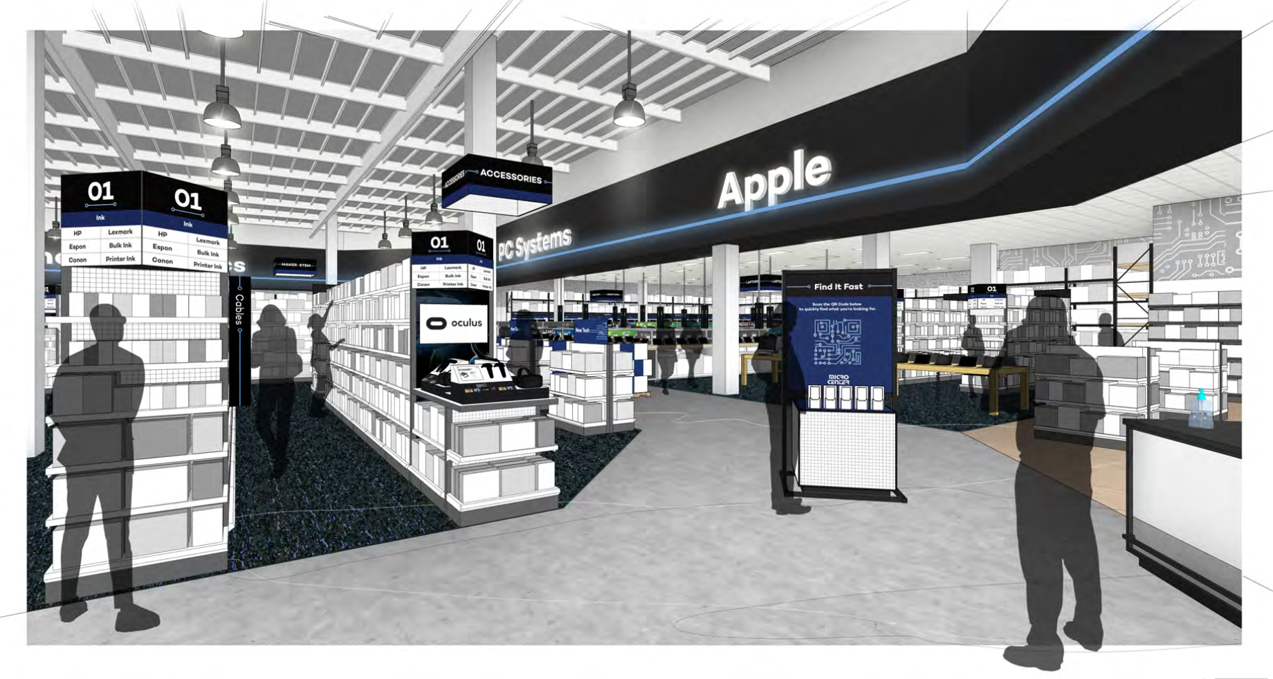 After the design direction was chosen, we moved into concept design reimagining the space and how it functions. I was responsible for three departments within the scope: the Tech Bar, Build Your Own, and Order Pickup.